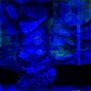 Pour ce nouveau tableau « Vieille histoire », peint au revers du verre, j’ai étudié avec plaisir la sculpture « le baiser » de Rodin, découverte au cours de mes recherches sur les rendus d’attitude, et replongé avec délices dans mes déclinaisons de bleu, laissées de côté dans les dernières réalisations.