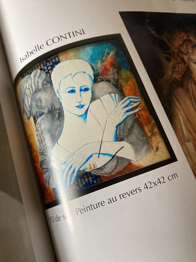 Cette année, j’ai le plaisir d’y participer avec « Fil de soi », un tableau peint au revers du verre.