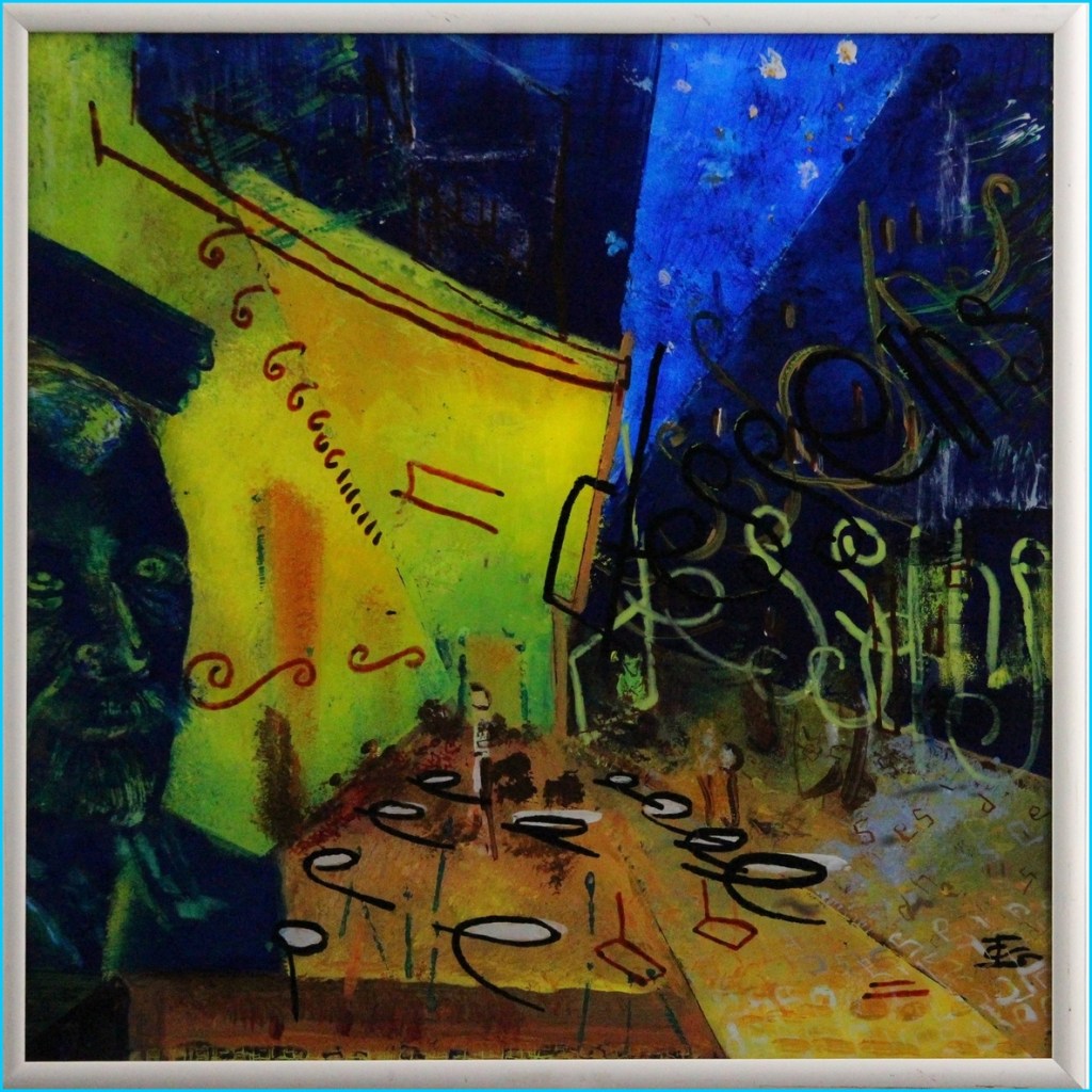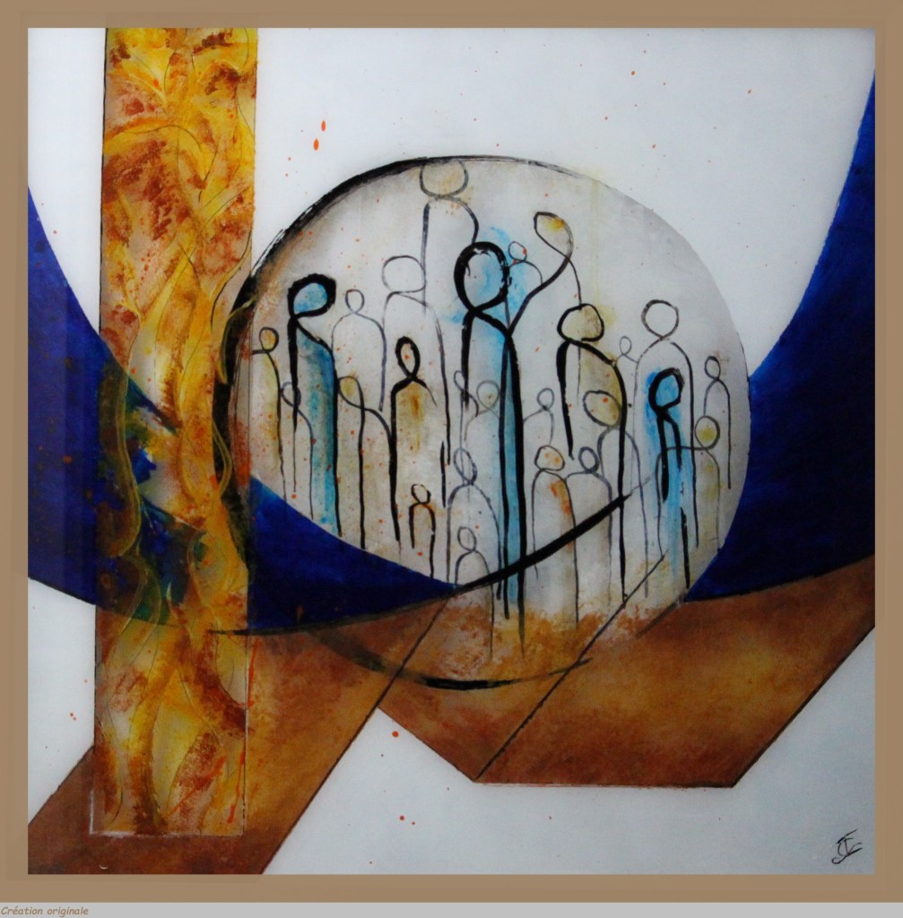 Equilivre, acrylique au revers du verre, églomisation partielle